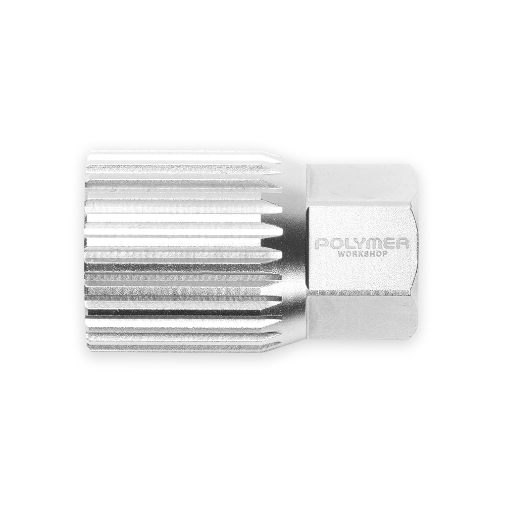 Precision tool used for removing the threaded ring nut inside the hub shell on ratchet-based systems, necessary to replace the bearings of driveside. Designed specifically to fit the Enhance and Venture wheels. Ideal for bearing maintenance or ratchet system servicing.