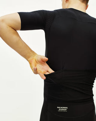 The PAS Mechanism Pro Jersey merges unique structurally mapped fabrics with speed-optimised construction in a jersey made for speed. Every detail in the jersey has been meticulously calibrated for pro-level performance and a second-skin feel. From the unique 4D stretch-woven fabrics developed for Pas Normal Studios to the choice of finish and construction in the PAS Mechanism Pro Jersey.